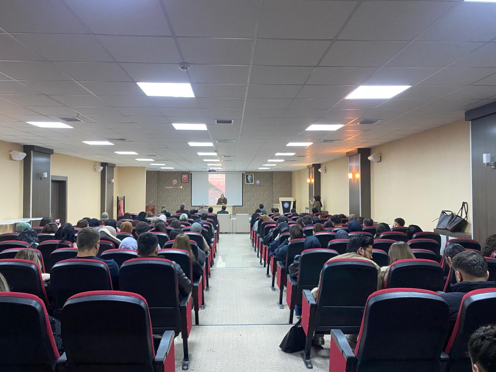 Fakültemiz Türk Dili ve Edebiyatı Bölümü öğretim üyesi Prof. Dr. İsmet EMRE’nin konuşmacı olarak yer aldığı programa Rektör Yardımcımız Prof. Dr. Süleyman DEĞİRMEN ve Dekanımız Prof. Dr. Vehbi ÜNAL ile birlikte pek çok dinleyici iştirak etti.