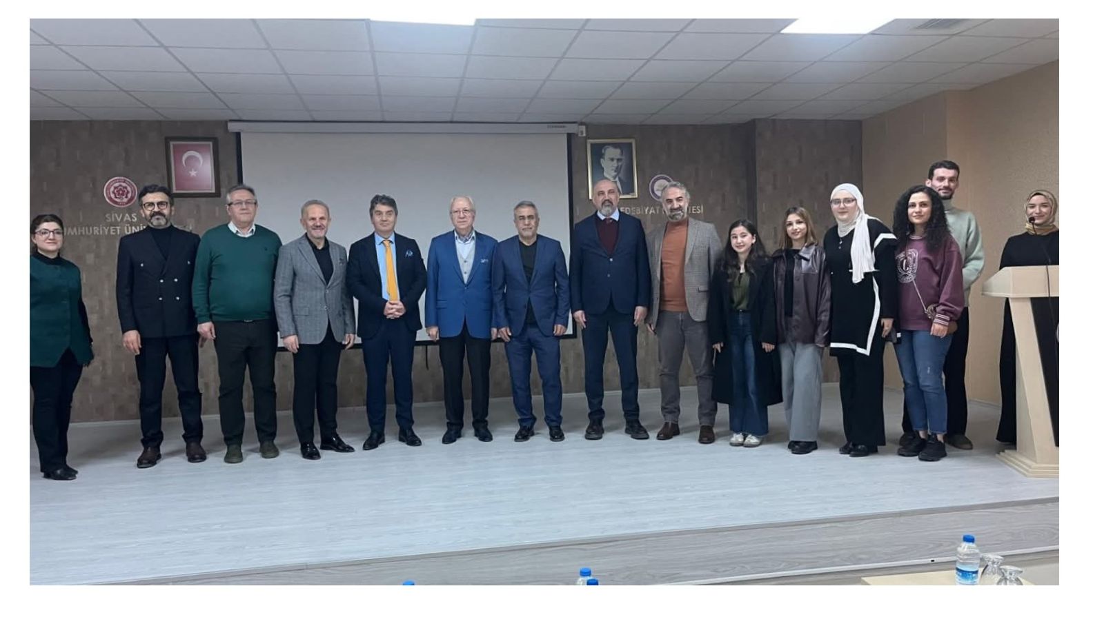 Fakültemiz Türk Dili ve Edebiyatı Bölümünün kariyer söyleşileri kapsamında İl Genel meclis Başkanı Mehmet Şarkışla “Hayata ‘Edeb’iyatla Hazırlanmak” başlığı altında öğrencilerimizle buluştu. Sivas Valisi Dr. Yılmaz Şimşek, Vali Yardımcısı Halil İbrahim Yeşilyurt, Rektör Yardımcıları Prof. Dr. Hayati Öztürk ve Prof. Dr. Salih Cem İnan, Dekanımız Prof. Dr. Vehbi Ünal, Fakülte hocalarımız ve öğrencilerin katıldığı programda Şarkışla; güzel söz söylemenin ve onun meyvesi olan edebiyatın insan için çok büyük kıymeti haiz olduğuna vurgu yaparak öğrencilere hayata dair önemli tavsiyelerde bulundu. Programın ardından Rektör Yardımcısı Prof. Dr. Hayati Öztürk tarafından Mehmet Şarkışla’ya plaket ve hediye takdim edildi.